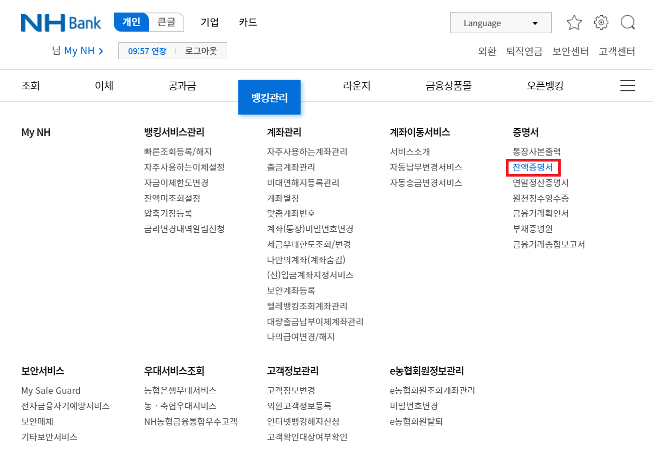 1. 인터넷뱅킹으로 농협 예금잔액증명서 발급하기